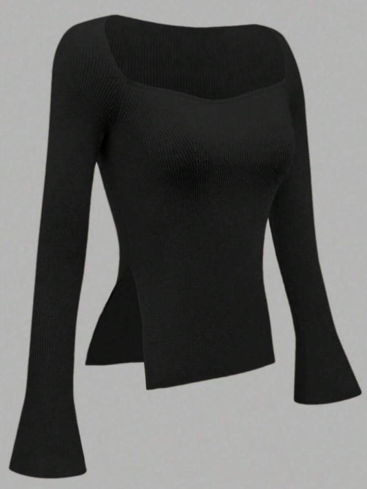Women's Cropped Neck Sweater Long Sleeve Shirts