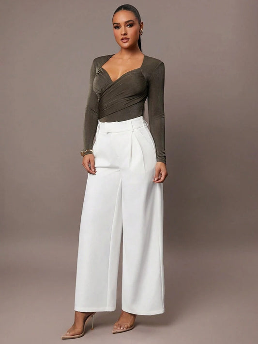 Slim Fit T-Shirt Bodysuit Solid Color Wrinkle