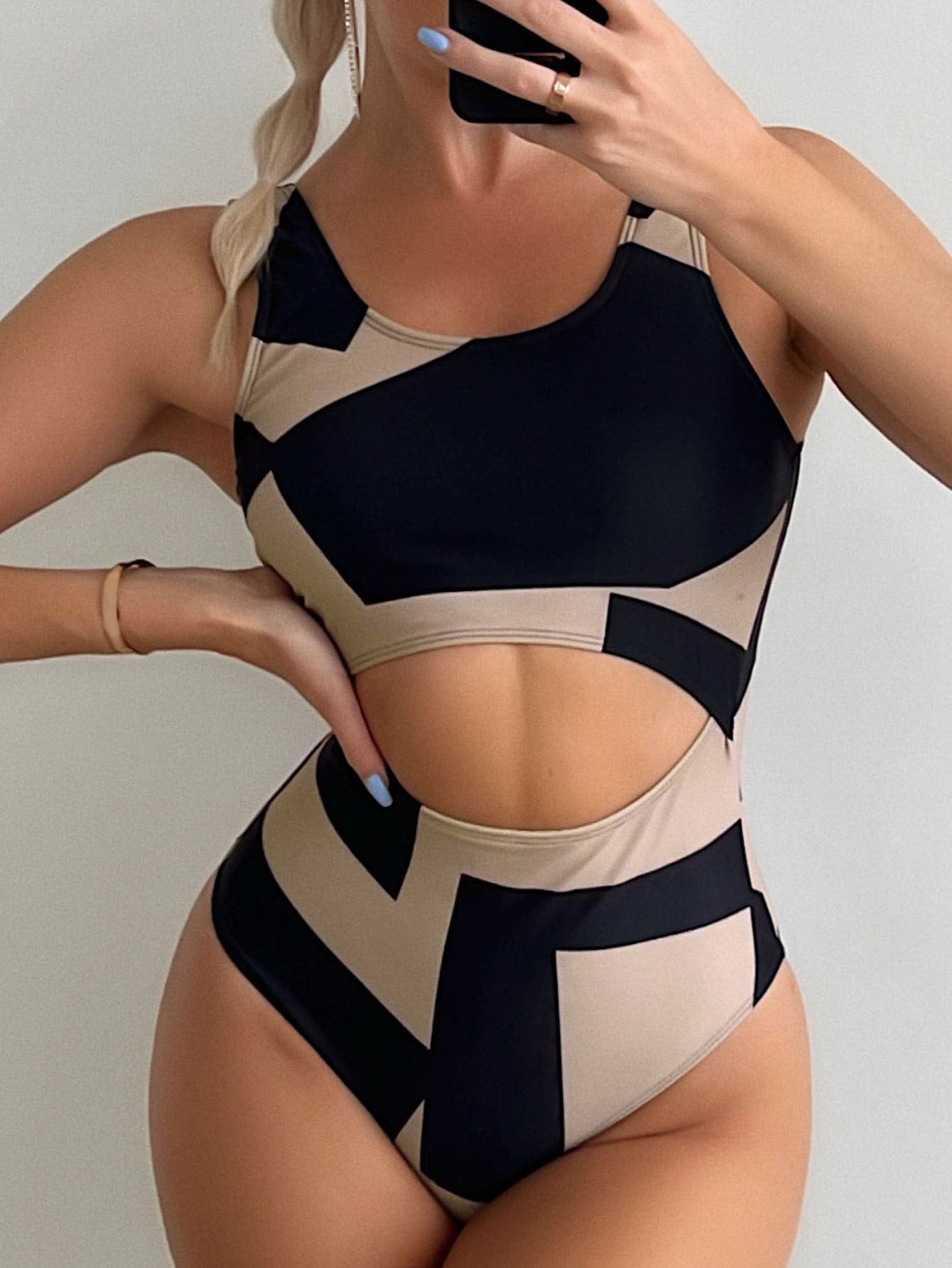 One-Piece Swimsuit Color block Cut-Out Design for Summer Beach