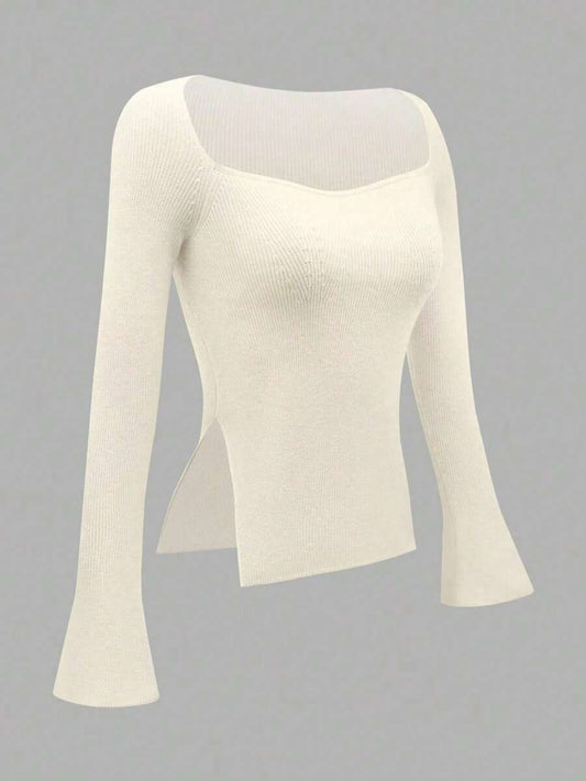 Square Neck Long Sleeve Bodysuit Women's Elegant Layering Top