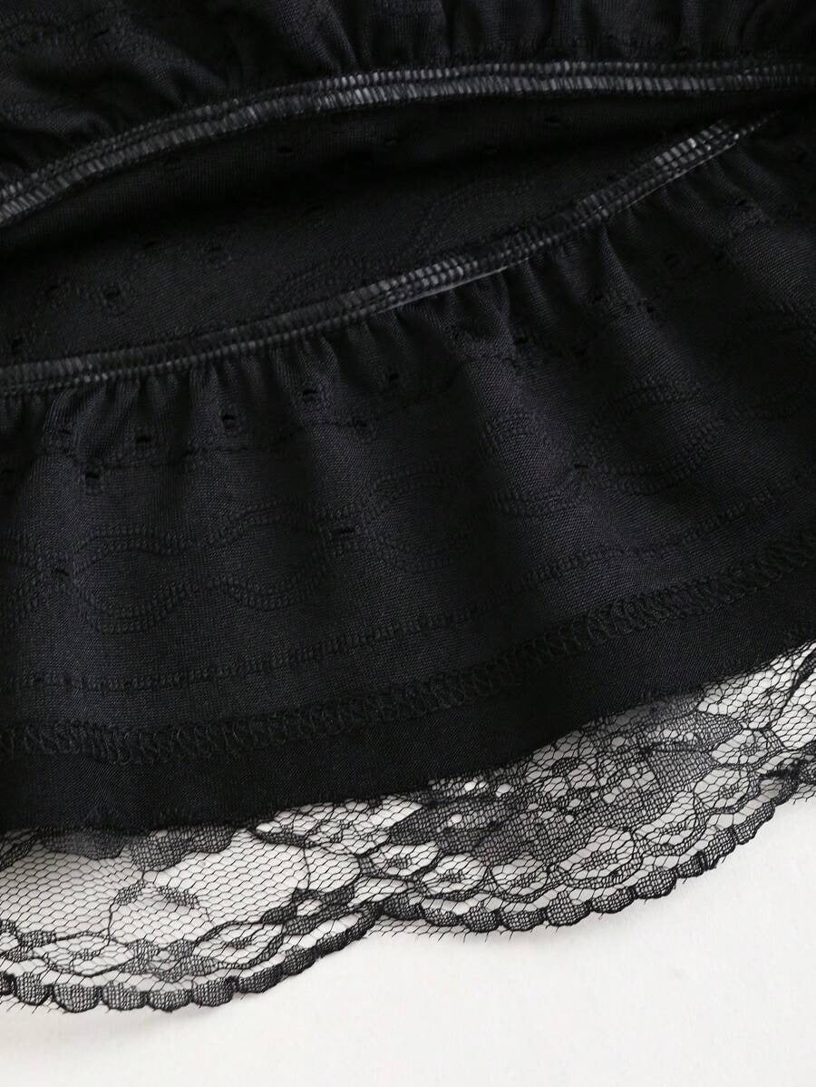 Sweetra A-Line Mini Skirt with Black Lace Trim, Fitted Silhouette To Flatter The Waist