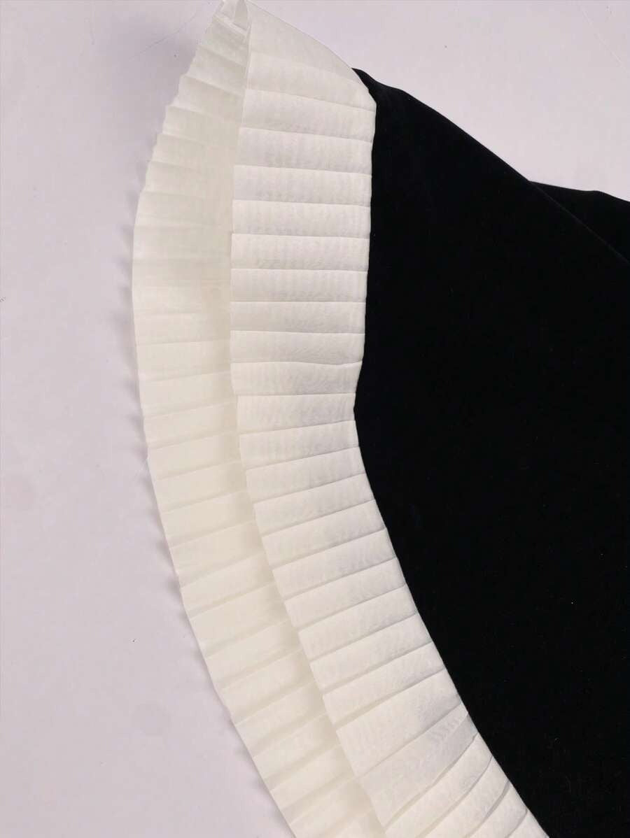 Women's Black velvet Dress With Contrasting Stitching and Elegant, Simple Pleats,Perfect for dates and Valentine's Day evenings